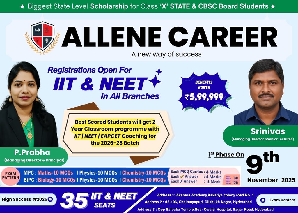 Expert coaching for IIT-JEE, NEET, CUET, and Intermediate Studies in Hyderabad.