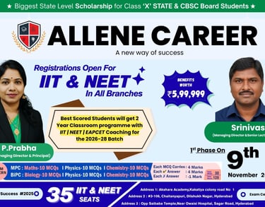 Best Scored Students will get a 2 Year Classroom programme with IIT | NEET | EAPCET Coaching for the 2026-28 Batch